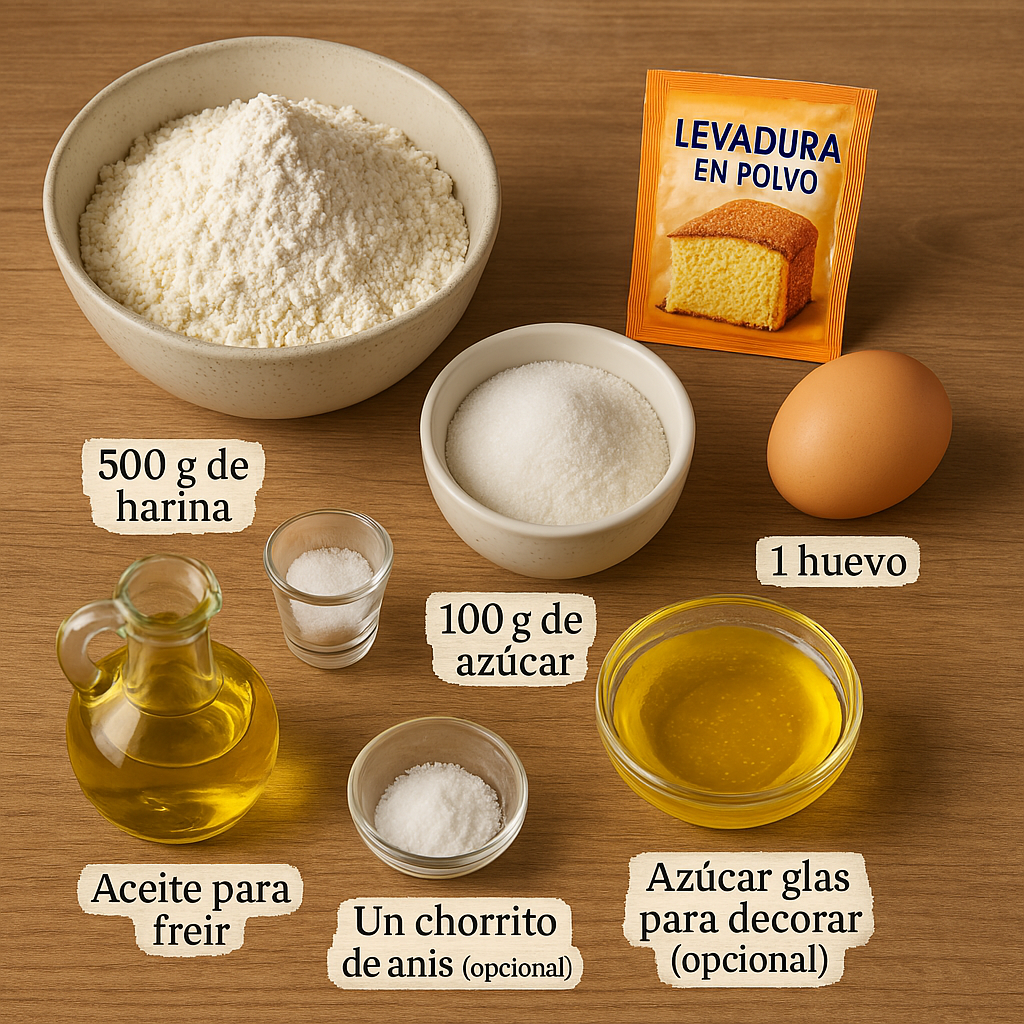 Si quieres hacer rosquillas listas y tontas, solo necesitas unos pocos ingredientes que probablemente ya tienes en casa. Aquí te dejamos la lista: