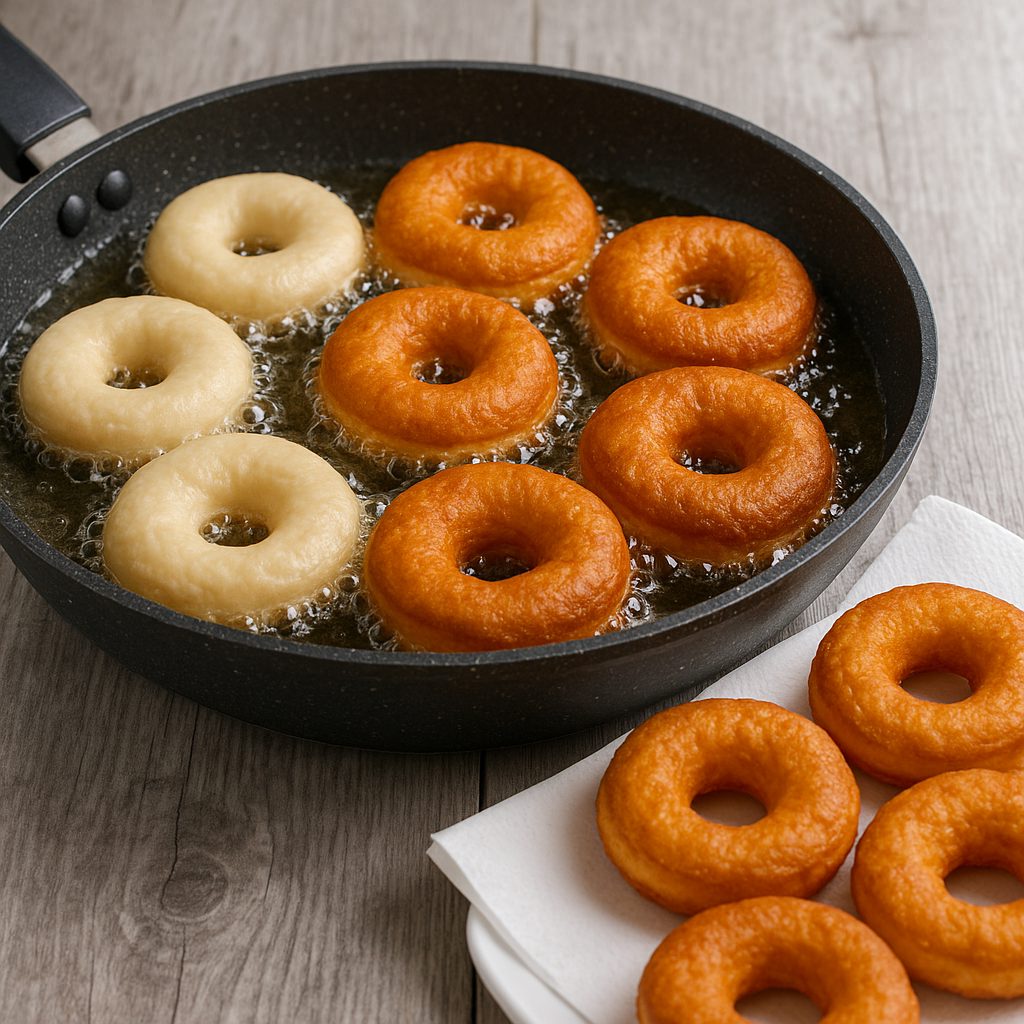 - Cuando el aceite esté caliente, empieza a freír las rosquillas por tandas. Fría las rosquillas durante unos 2-3 minutos por cada lado, hasta que estén doradas y crujientes.