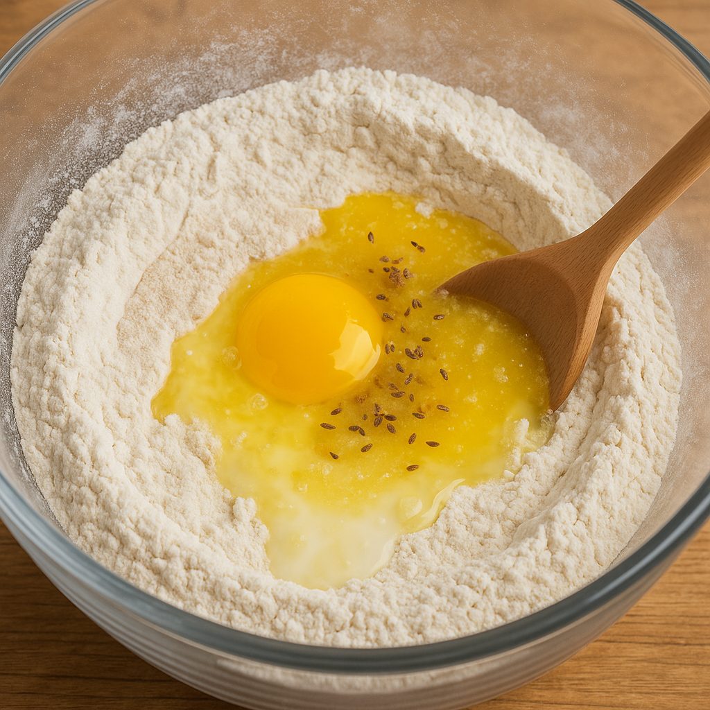 - Añade el huevo y la mantequilla derretida. Si te gusta, puedes poner un poco de anís para darles un toque especial.