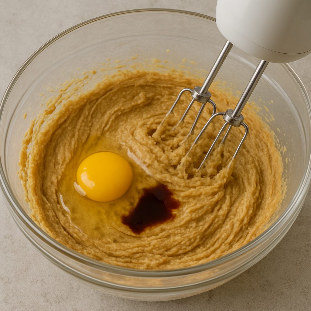 Añade el huevo y la esencia de vainilla y mezcla bien hasta que todo quede integrado.