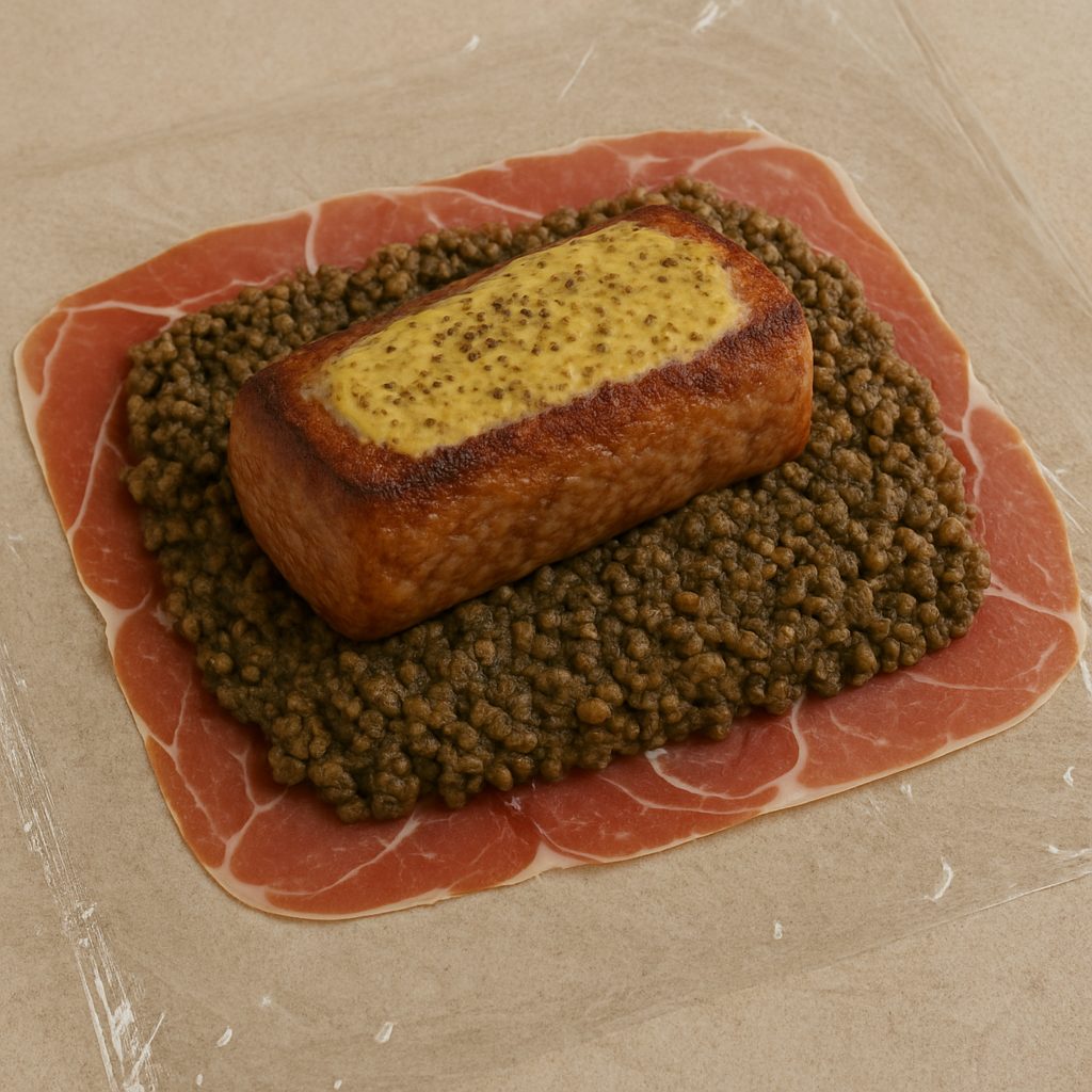 - El jamón serrano ayuda a mantener el hojaldre seco y evita que se humedezca con la duxelle.