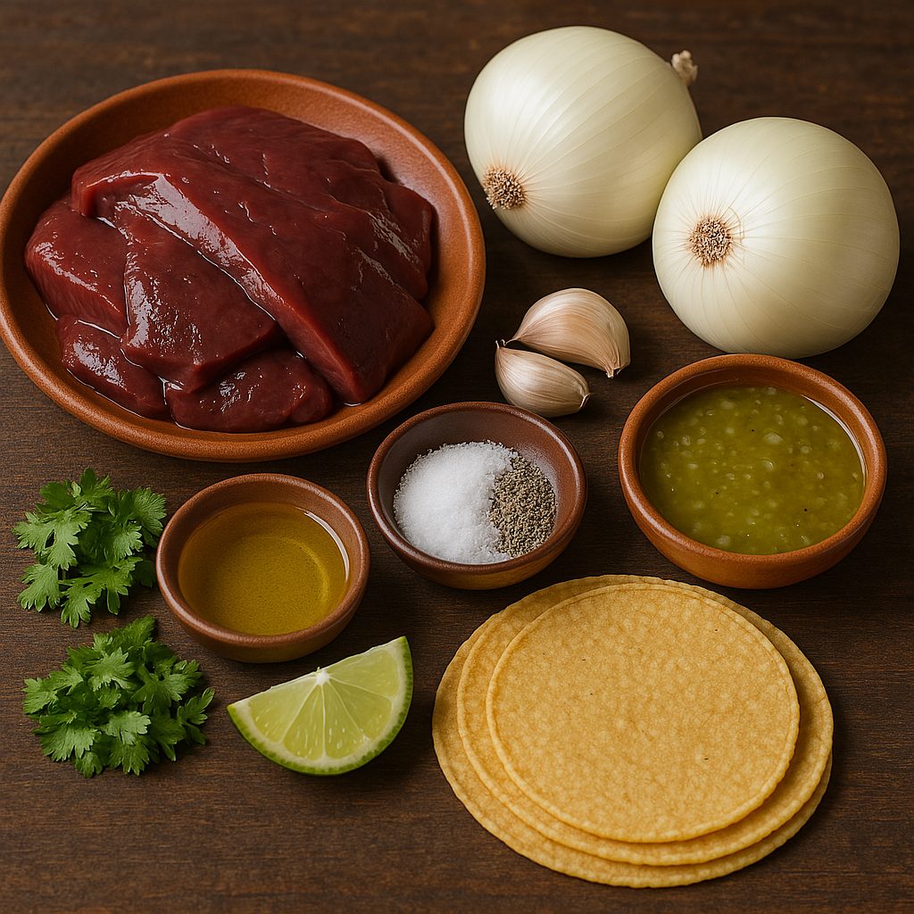 Para preparar este delicioso taco de hígado encebollado, necesitarás los siguientes ingredientes: