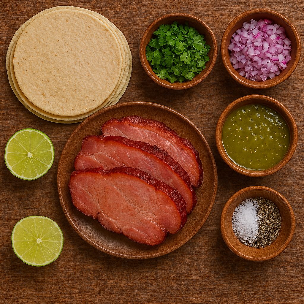 - Arma el taco: Coloca los trozos de chuleta ahumada sobre las tortillas calientes. Agrega cebolla y cilantro picado al gusto. Si te gusta el picante, añade salsa roja o verde, y exprime un poco de limón sobre el taco.