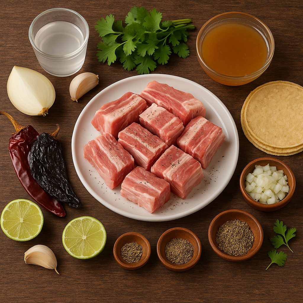 Para hacer un taco de costilla de cerdo en adobo, necesitarás los siguientes ingredientes: